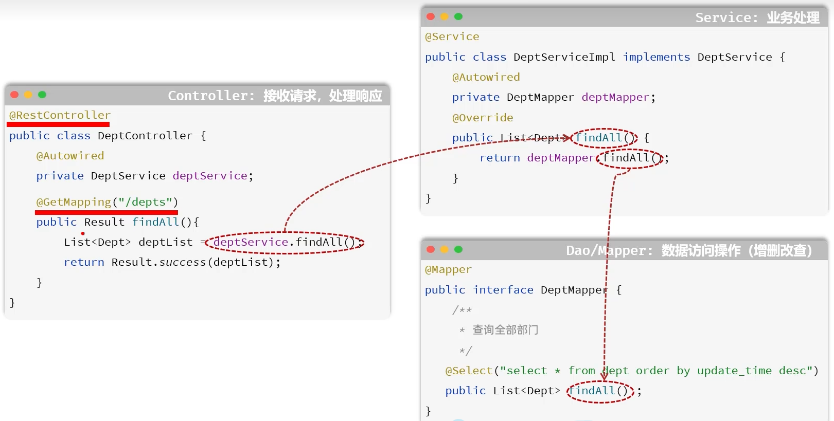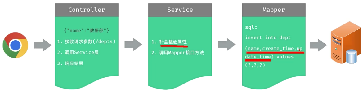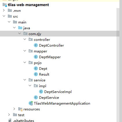 - 准备基础代码结构,并引入实体类Dept及统一的响应结果封装类 Result。