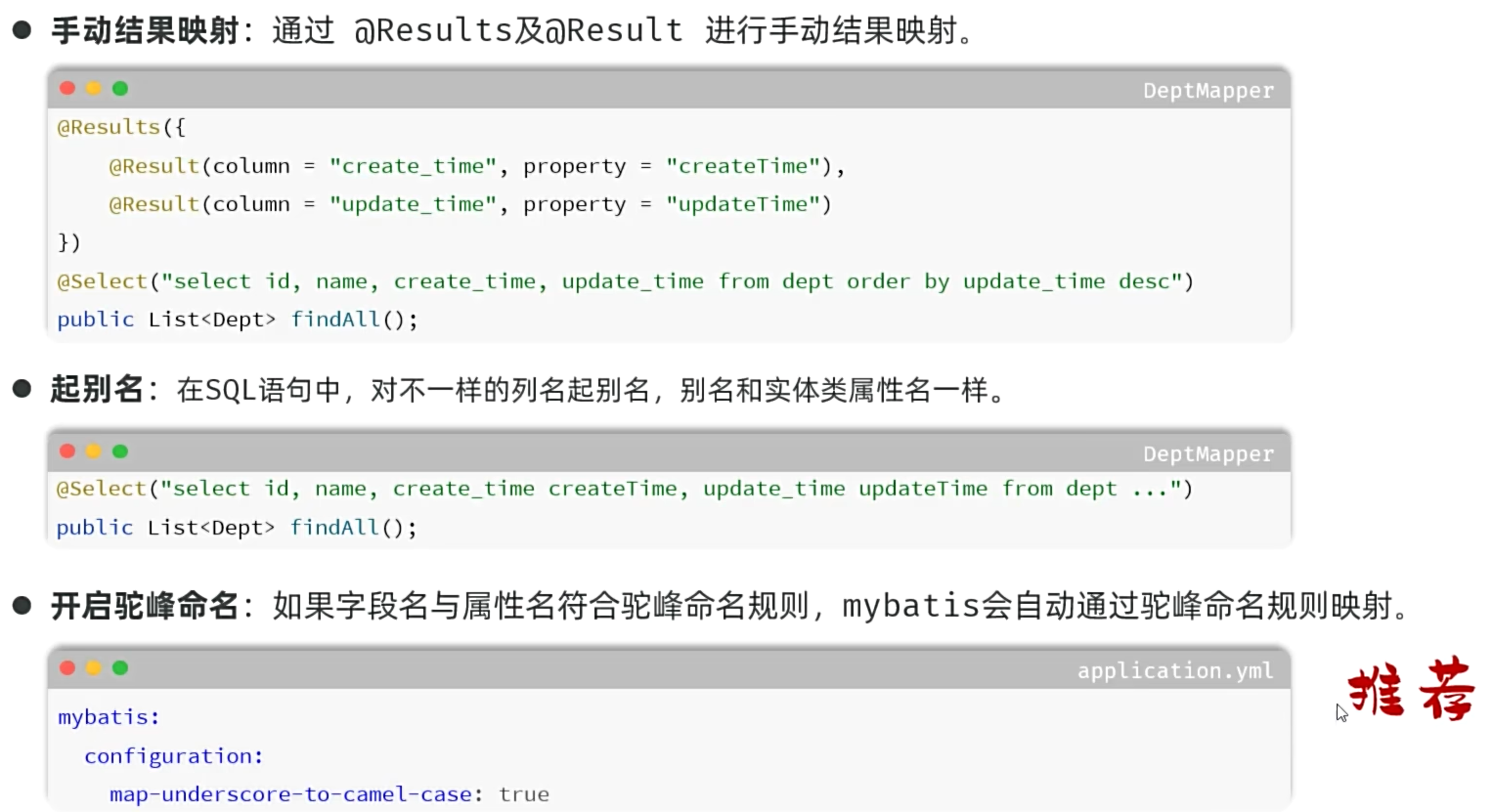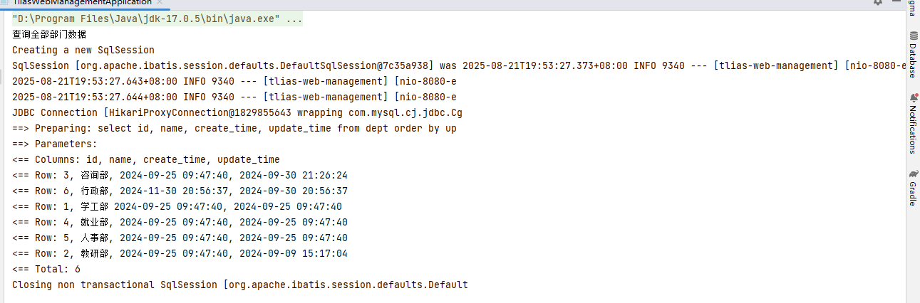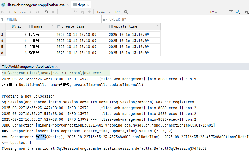 - 创建数据库表dept,并在application.yml中配置数据库的基本信息。