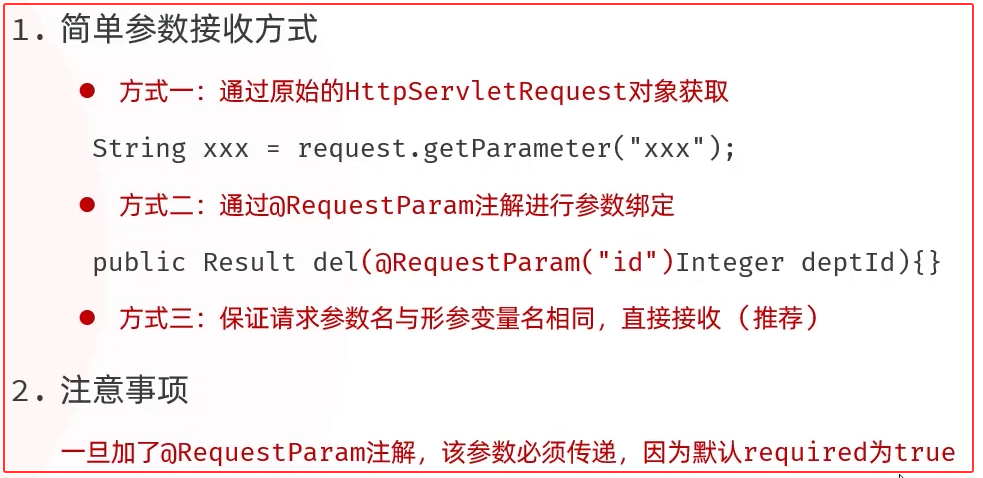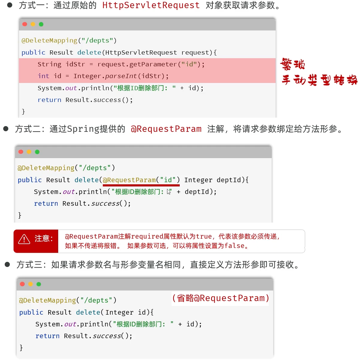 * 删除部门-方式三:省略@RequestParam(前端传递的请求参数名与服务端方法形参名一致)