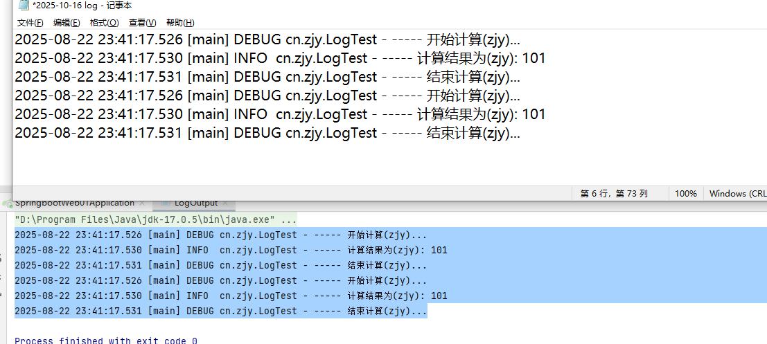 src/test/java/cn/zjy/LogTest.java testLog2()方法中加入下列3行