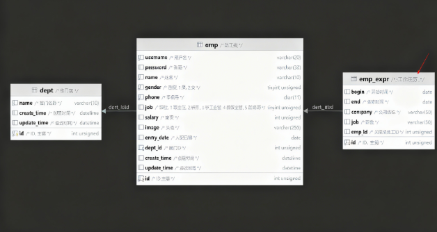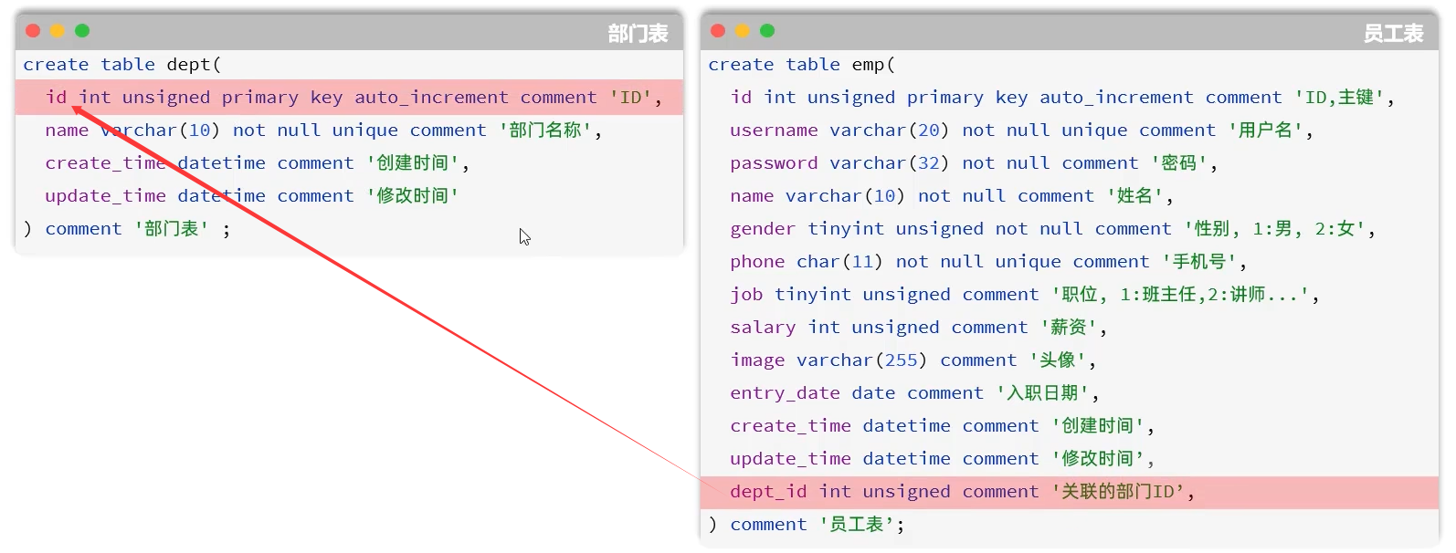 - 场景:部门与员工的关系 (一个部门下有多个员工)。