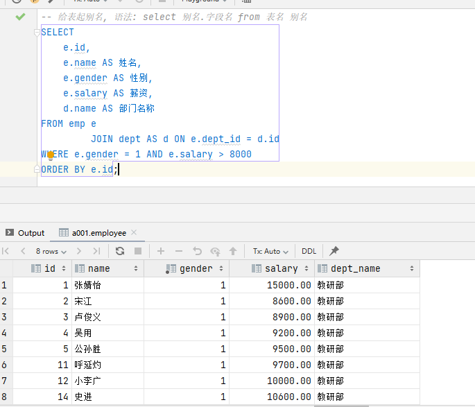 select e.*, d.name deptName from emp e left join dept d on e.dept_id = d.id