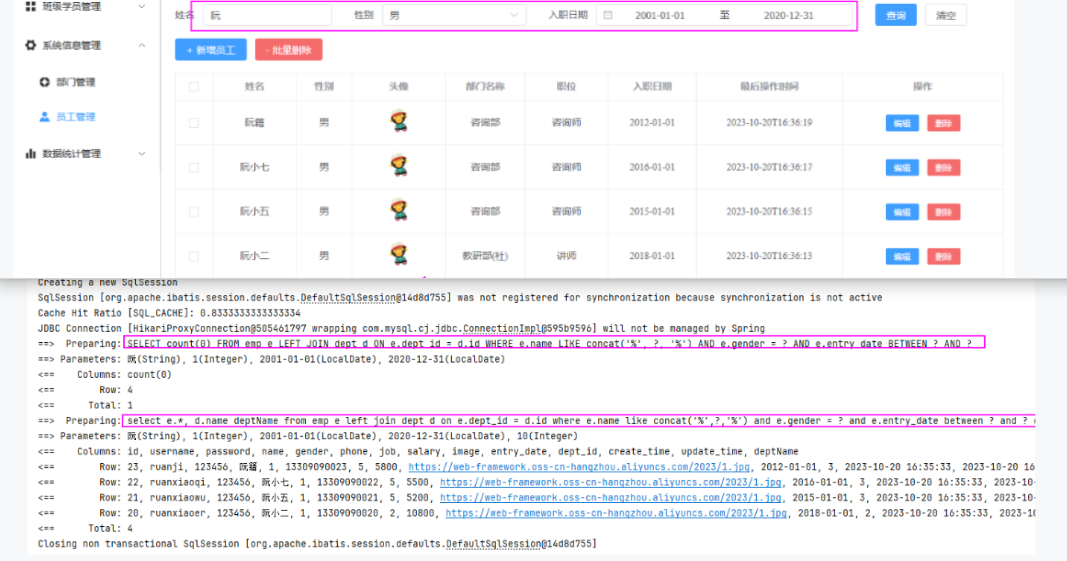 PageResult<Emp> pageResult = empService.page3(page, pageSize, name, gender, begin, end);