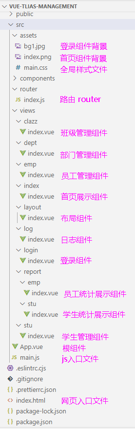 - 导入资料中准备的基础工程到VsCode 如将vue-tlias-management.zip复制到G:\workspace\duSSM\vue(个人vue工作目录)下解压