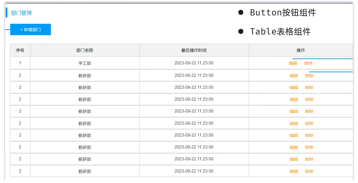 Day16 Web前端实战(案例):整体布局、 部门管理