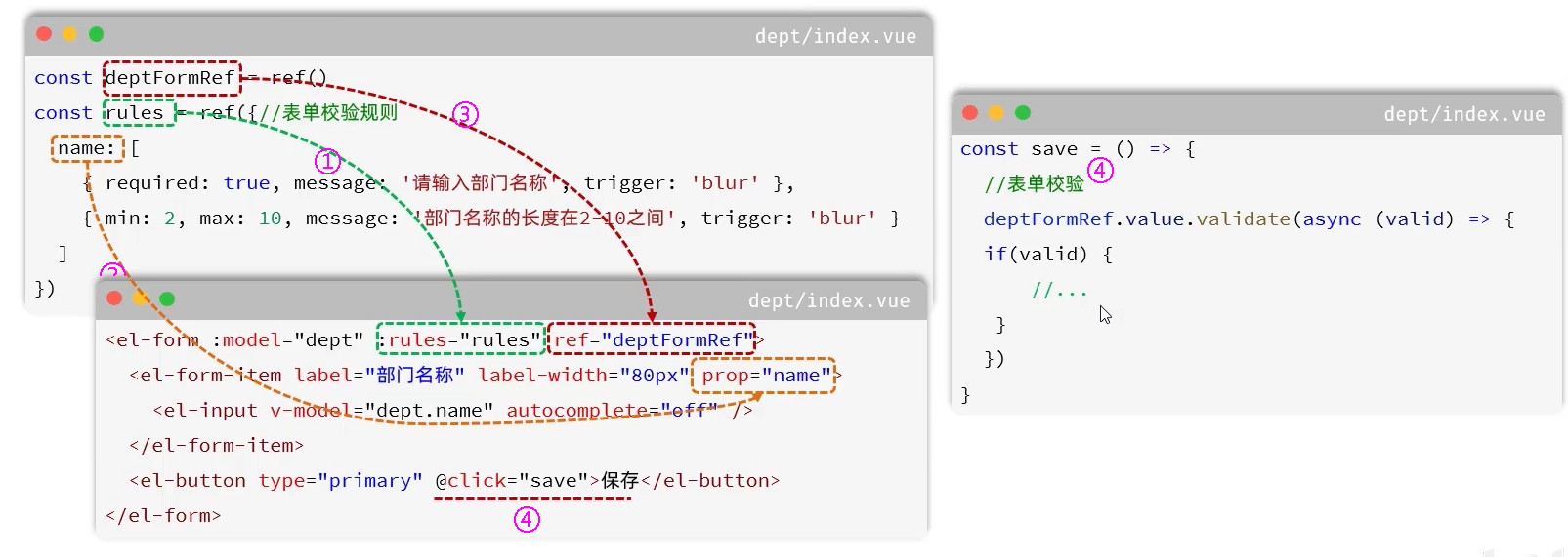<el-form :model="dept" :rules="rules" ref="deptFormRef">