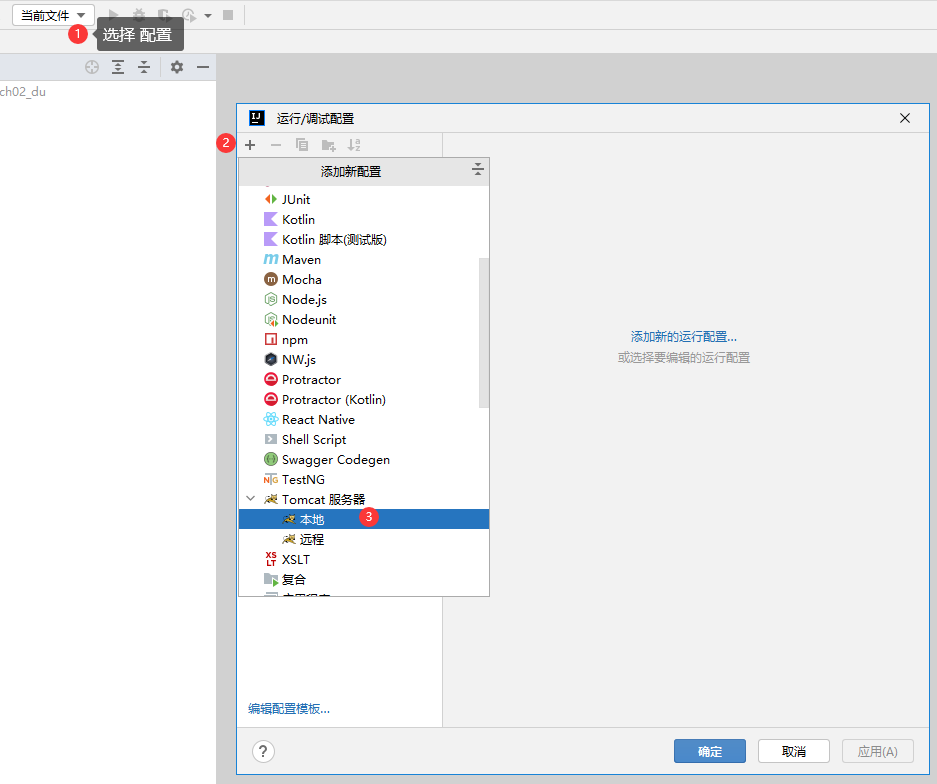 (11) 在弹出的Add New Configuration菜单栏窗口选择【Tomcat Server】→【Local】,在IDEA配置一个Tomcat服务器。
