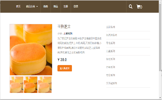 (25,'半熟芝士','picture/11-1.jpg','picture/11-1.jpg','picture/11-1.jpg',38,'为了保证芝士的香醇,半熟芝士借鉴日本温泉煮鸡蛋的做法,把芝士,牛奶,鸡蛋,天然奶油,砂糖,小麦粉拌成面糊,通过水浴蒸烤,保证芝士蛋糕细嫩,柔软,留住芝士的香醇细滑.',10,2),
