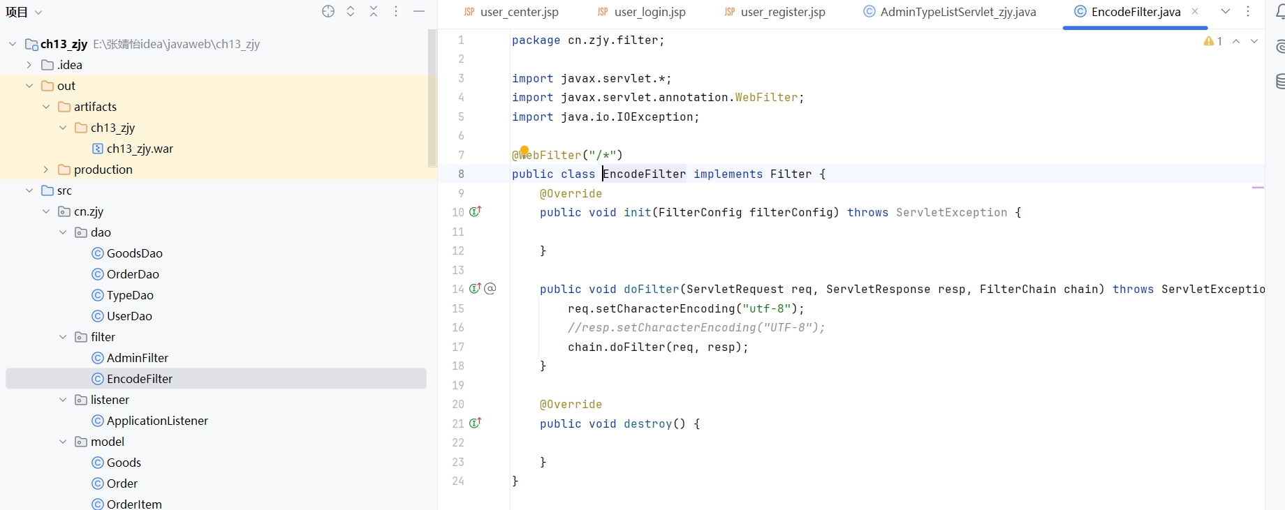 cn.zjy.filter.EncodeFilter 对 /* 所有 请求 设置字符编码 utf-8